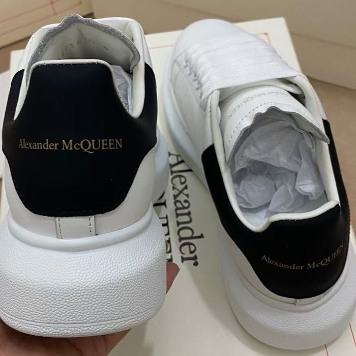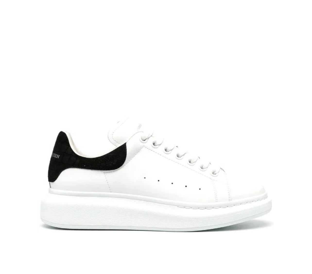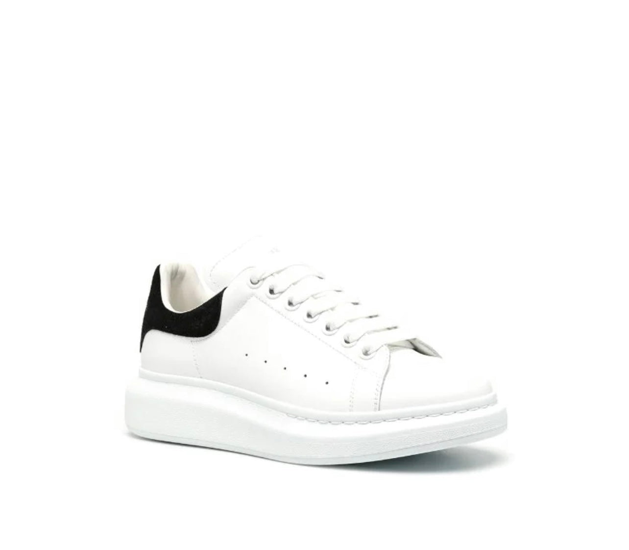 Zapatillas Alexander McQueen hechas con cuero blanco y detalles negros. Este diseño dinámico tiene una suela de goma con propiedades antideslizantes. Se sujetan con cordones y están forradas en cuero.
