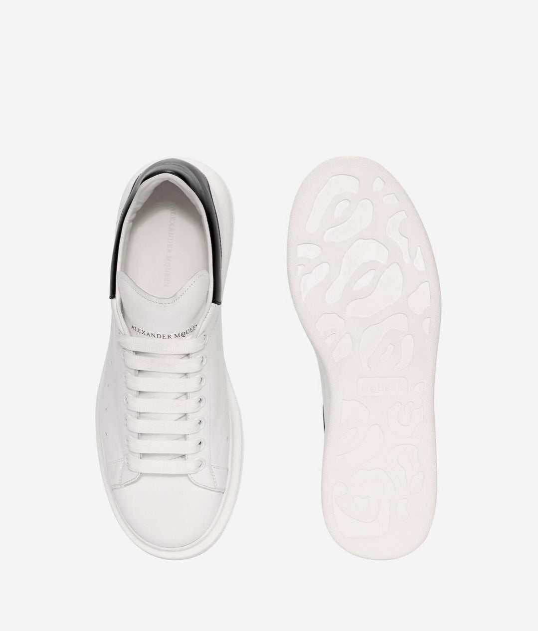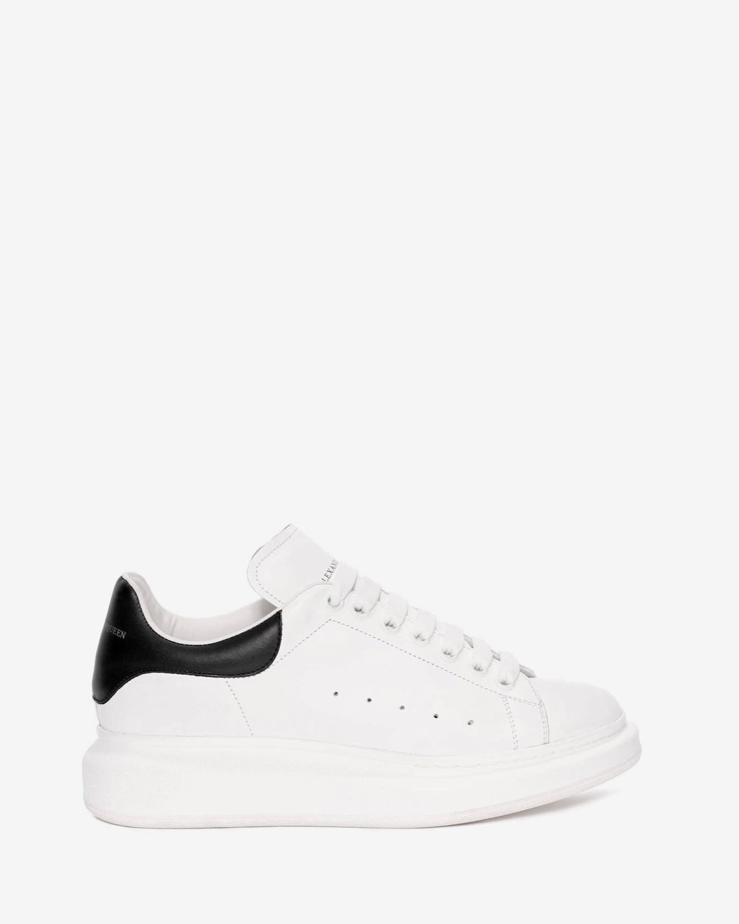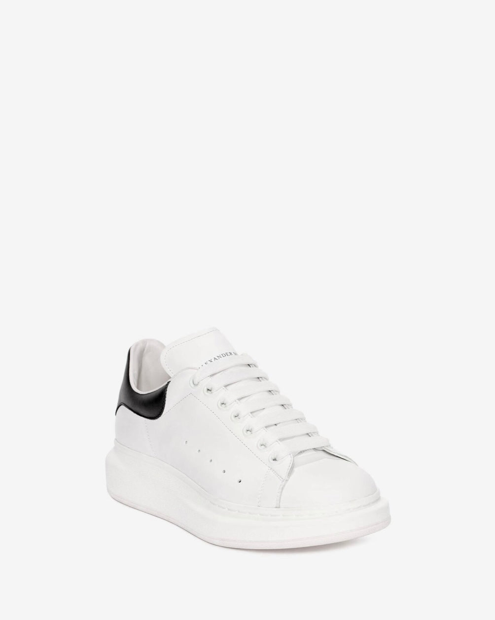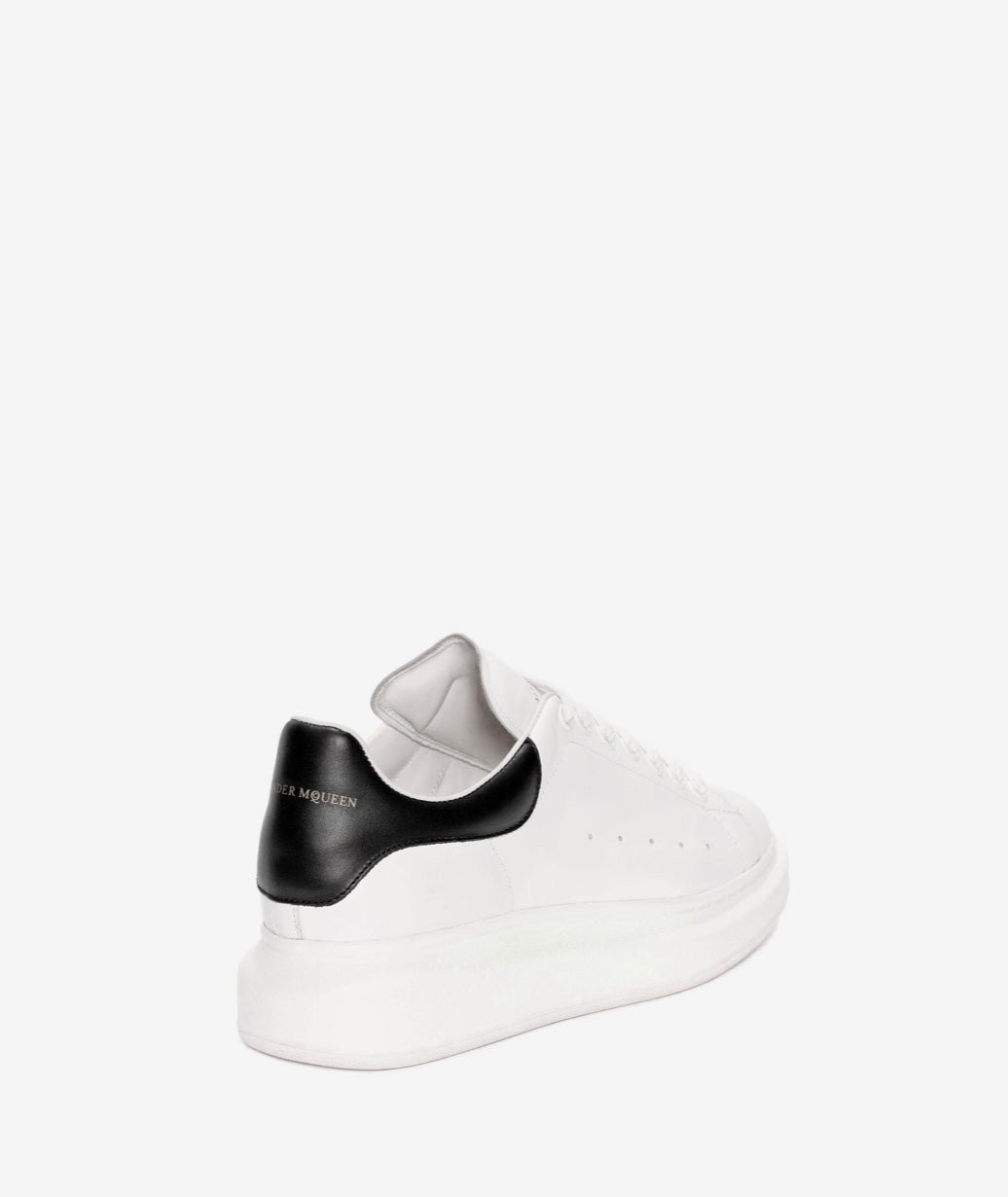 Zapatillas Alexander McQueen hechas con cuero blanco y detalles negros. Este diseño dinámico tiene una suela de goma con propiedades antideslizantes. Se sujetan con cordones y están forradas en cuero.