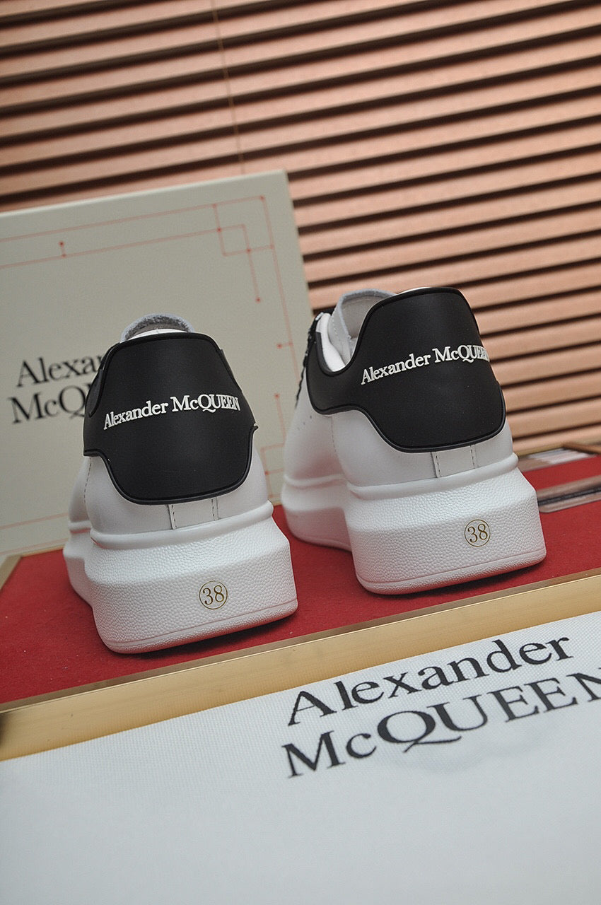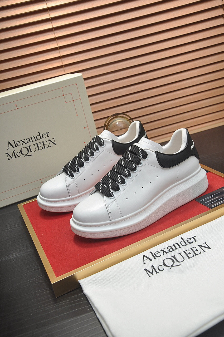 Zapatillas Alexander McQueen hechas con cuero blanco y detalles negros. Este diseño dinámico tiene una suela de goma con propiedades antideslizantes. Se sujetan con cordones y están forradas en cuero.