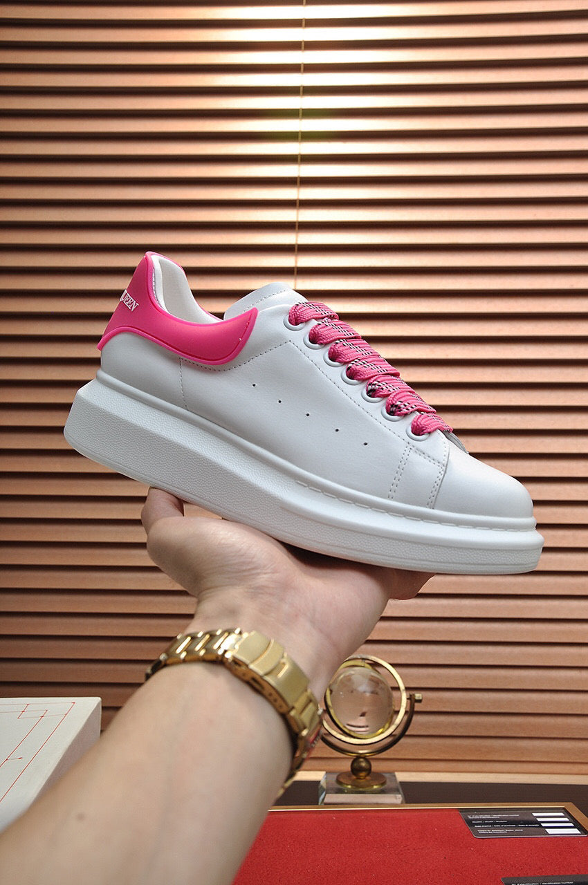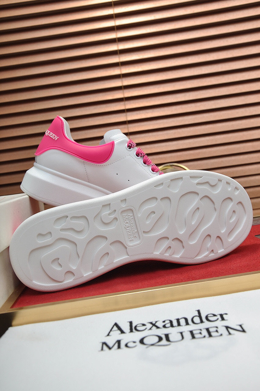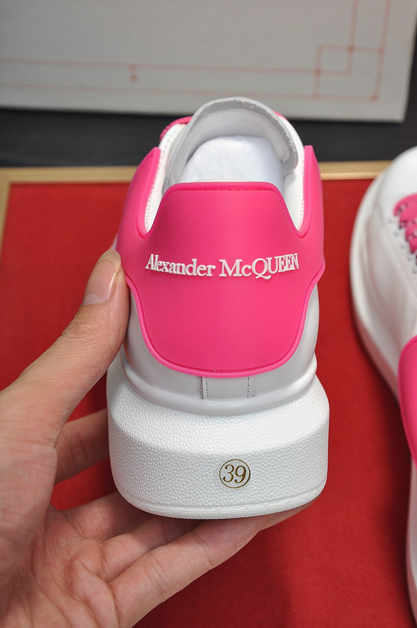 Zapatillas Alexander McQueen hechas con cuero blanco y detalles rosas. Este diseño dinámico tiene una suela de goma con propiedades antideslizantes. Se sujetan con cordones y están forradas en cuero.