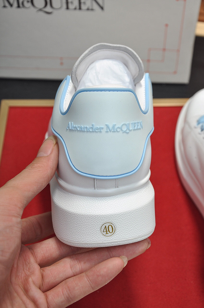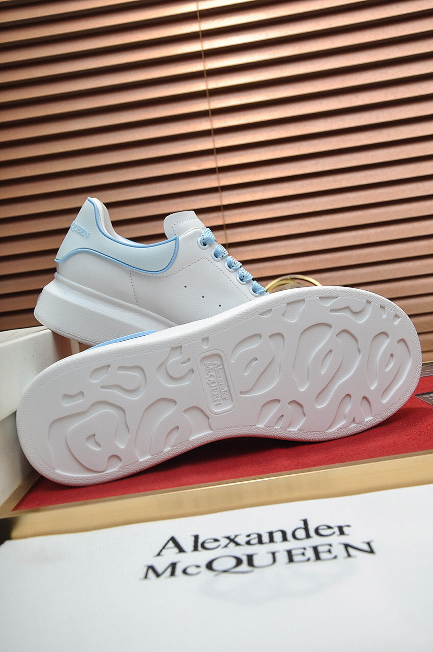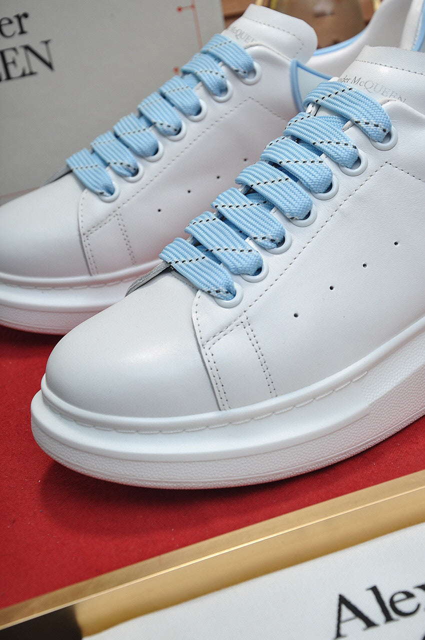 Zapatillas Alexander McQueen hechas con cuero blanco y azul cielo. Este diseño dinámico tiene una suela de goma con propiedades antideslizantes. Se sujetan con cordones y están forradas en cuero.