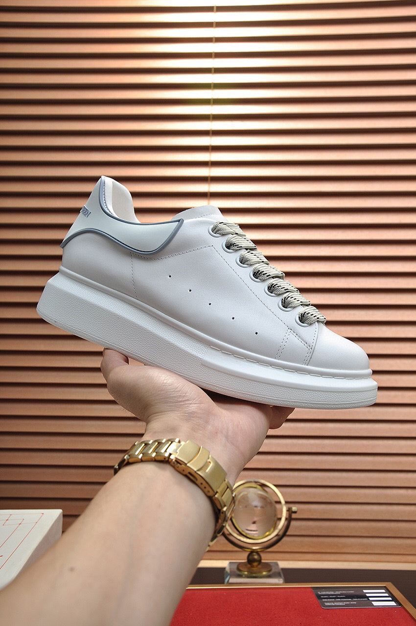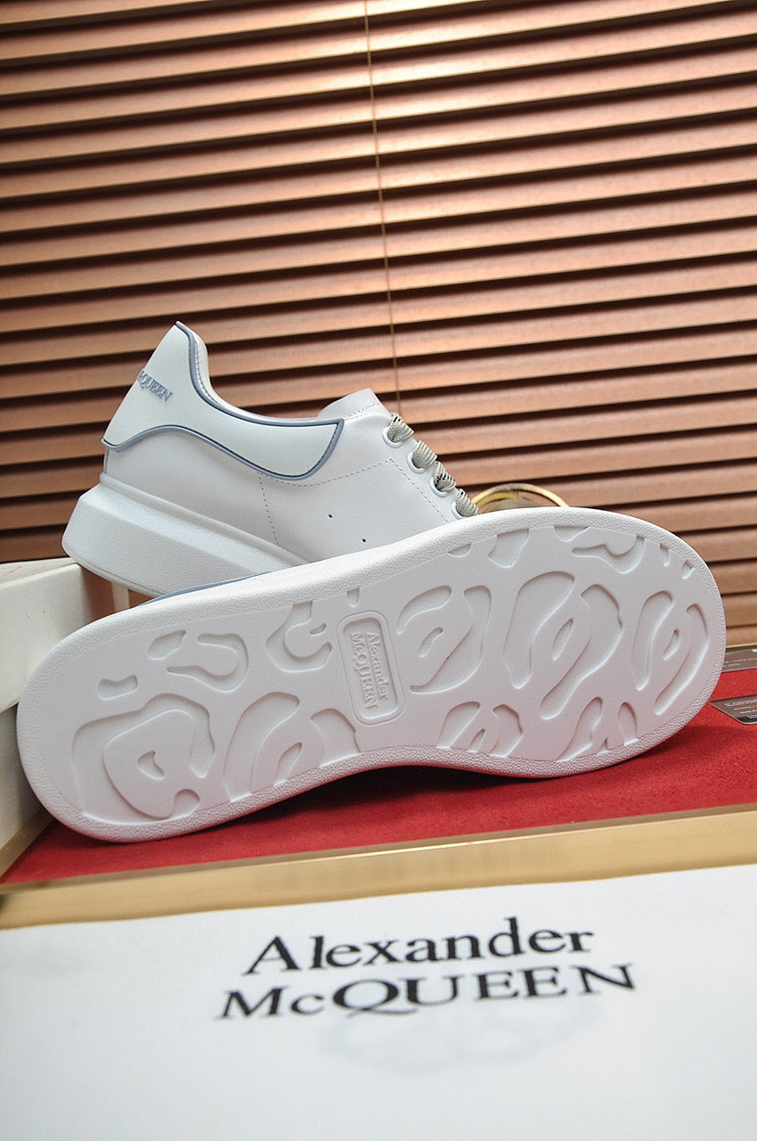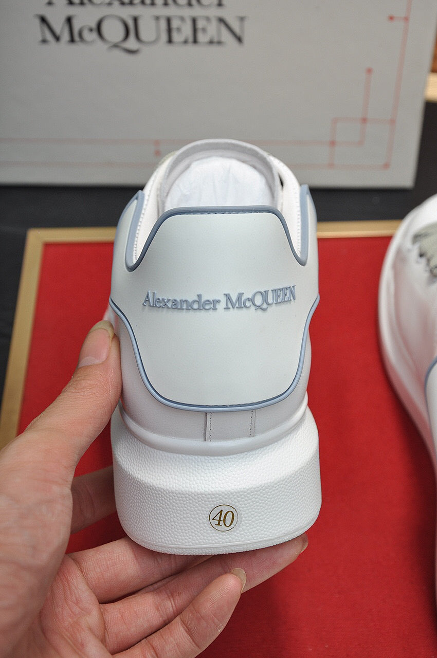 Zapatillas Alexander McQueen hechas con cuero blanco y detalles grises. Este diseño dinámico tiene una suela de goma con propiedades antideslizantes. Se sujetan con cordones y están forradas en cuero.