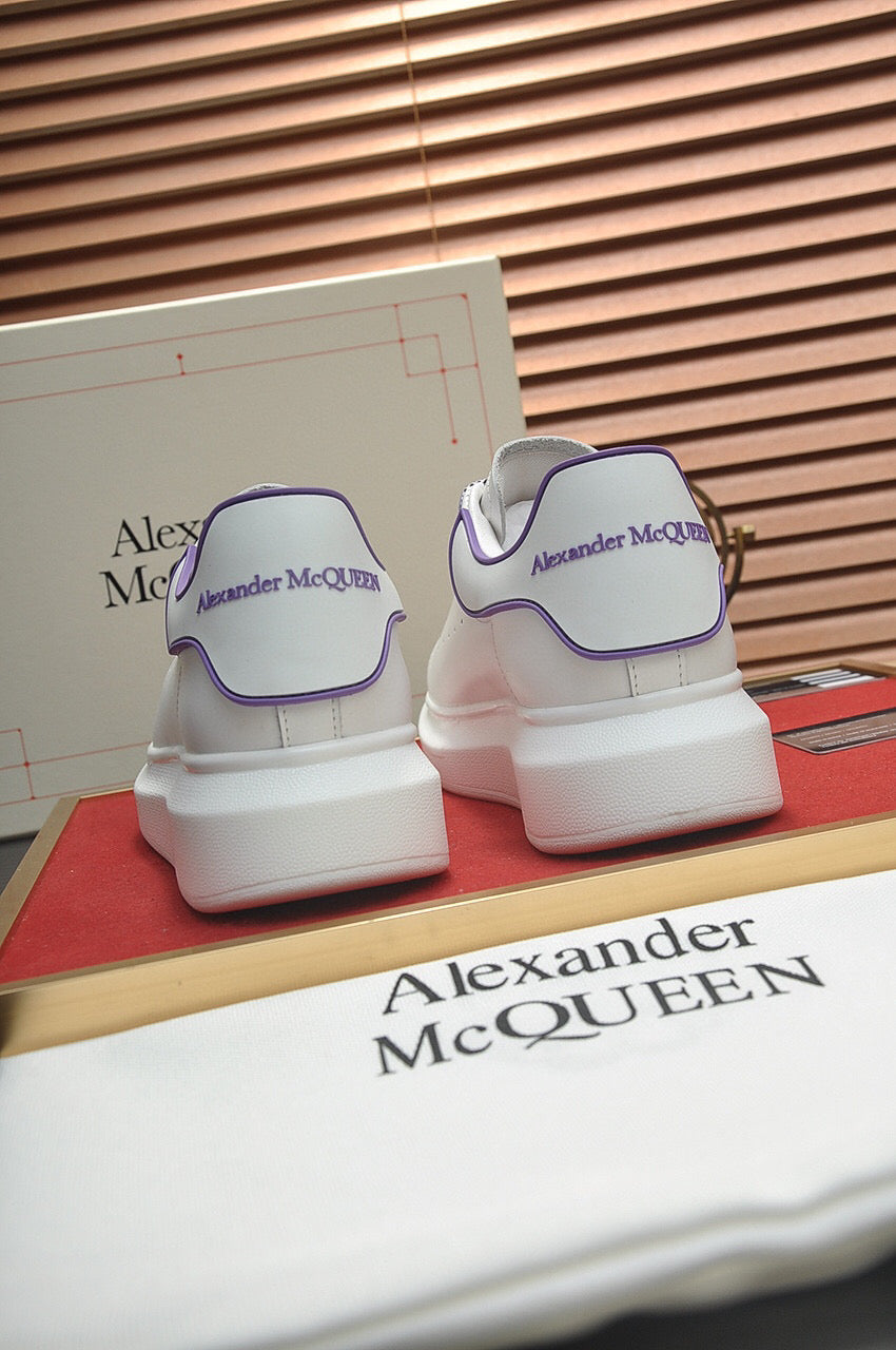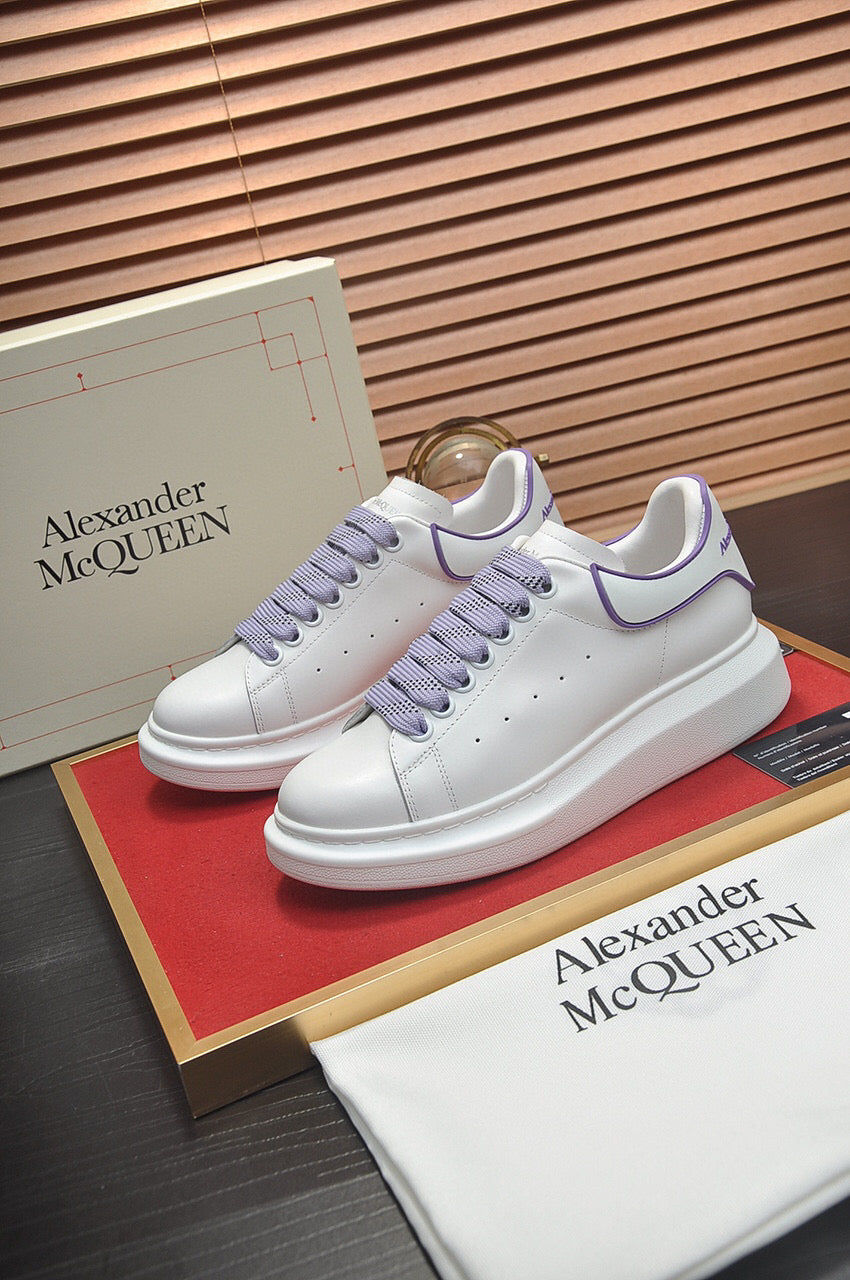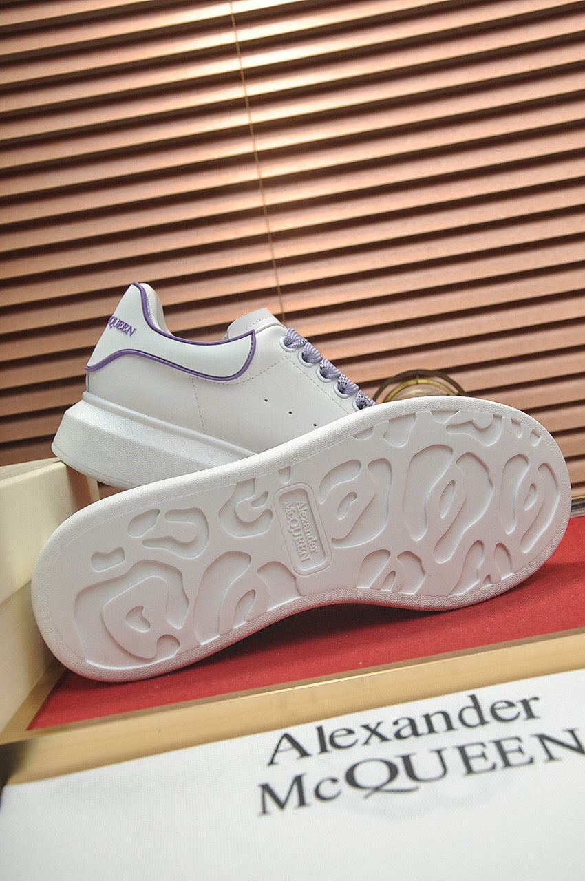 Zapatillas Alexander McQueen hechas con cuero blanco y detalles lilas. Este diseño dinámico tiene una suela de goma con propiedades antideslizantes. Se sujetan con cordones y están forradas en cuero.
