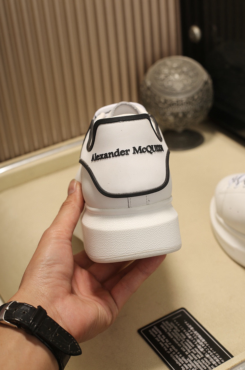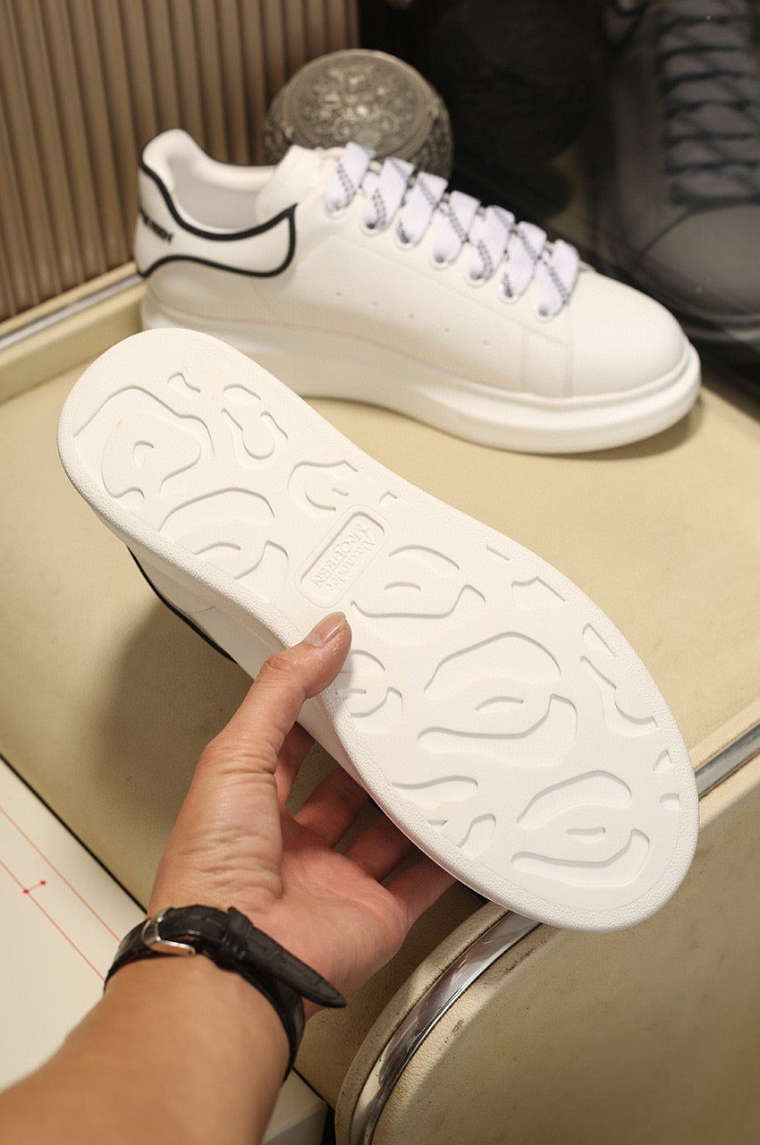 Zapatillas Alexander McQueen hechas con cuero blanco y detalles en negro en la silueta. Este diseño dinámico tiene una suela de goma con propiedades antideslizantes. Se sujetan con cordones y están forradas en cuero.